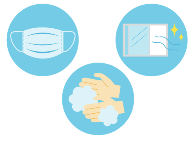 ※インフルエンザや新型コロナと同じ5類の分類ではありますが、就業や登校の制限はなく、これまで通り自己判断での対応です。感染症対策の基本は「手洗い」、「せきエチケット(マスク)」、「換気」です。毎日の暮らしの中でできることを意識しましょう。
