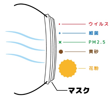 図:マスクと黄砂等の大きさ比較(イメージ)